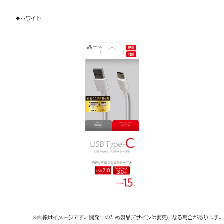 Type-Cケーブル Type-Cケーブル 両挿し対応 QuickCharge3.0急速充電ケーブル 1.5m 製品特徴 USB Type-Cコネクターと、USB-Aコネクターに対応した、充電・同期対応のUSB2.0ケーブルです。