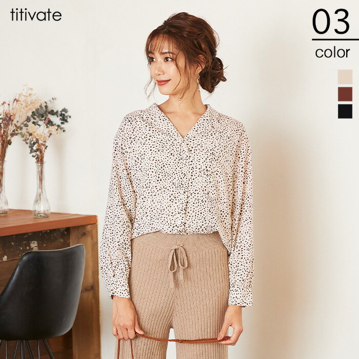 レオパードオープンカラーブラウス/トレンド感のある配色が魅力のアニマル柄/トップス/レディース/ブラウス/長袖/羽織り/ライトアウター/アニマル柄/ボタン/薄手【メール便可/50】