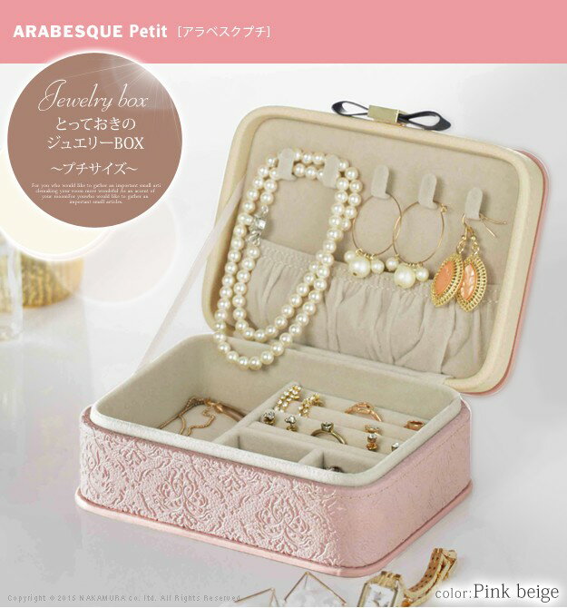 サイズ:幅15.3x奥行11.3x高さ6.3cm・約0.3kgカラー:ピンクベージュ・ロイヤルネイビー材質:本体(外貼り)-合成皮革(PVC)、内貼り-起毛布完成品株式会社ナカムラ(A0800015)ジュエリーボックス アクセサリーケース 収納 持ち運び プチジュエリーボックス 〔アラベスク〕 小物入れ ギフト ネックレス 指輪 ピアス コンパクト【注意事項】こちらのページの商品は、メーカー直送の商品となります。