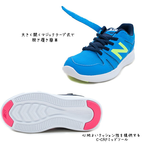 ニューバランス スニーカー YT570 NewBalance メッシュ シューズ ジュニア 子供 YT570BR YT570VB マジックテープ ベルクロ 子供靴 軽量 痛くない ランニング ウォーキング 運動靴 通学 ブラック/ピンク ブルー/ライム /MR
